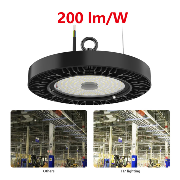 Crafted from ADC12 die-cast aluminum, the UFO High Bay is built to last. It meets DLC 5.1 Premium certifications, ensuring quality. Specifications include 120V-277V input voltage, 100W wattage, 16,000 lumens output, and an 80+ CRI. Elevate your lighting with the UFO High Bay – practical, efficient, and reliable.