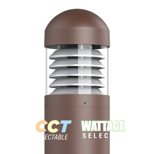Architectural Round Bollard Light with CCT and Wattage Selector, Louvre Style